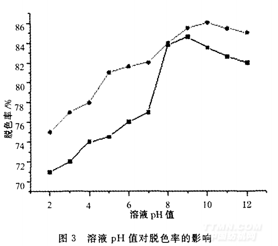 2.3溶液pH值對脫色率的影響