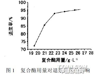 由圖1、2 知,改變復合酶濃度,復合酶的催化作用隨著復合酶濃度的增加,退漿率也隨之提高。當復合酶濃