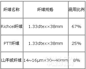 1.1 Richcel纖維是由丹東化纖廠生產(chǎn)的具有優(yōu)異綜合性能的一種改性粘膠纖維。該纖維集天然纖維與化學(xué)纖維的優(yōu)良特性于一身,特點是斷裂強力高、斷裂伸長小、濕態(tài)模量高,耐堿性好,能經(jīng)受一定的絲光處理,鉤結(jié)強度較低使之不易產(chǎn)生起球現(xiàn)象。Richcel纖維全流程清潔生產(chǎn),纖維及其制品可再生,可降解,被稱為21世紀綠色纖維,其織物具有導(dǎo)濕、透氣、手感柔軟滑爽,懸垂性好、染色鮮艷、富有光澤,織物的接觸舒適性、質(zhì)感舒適性較好。