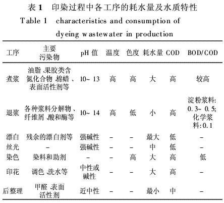 印染過程中各工序的排水情況及水質特性如表1所示[8]。
