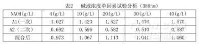 PH為14時, NaOH的濃度為40g/L,濃度較大,因此對NaOH濃度做單因素分析。