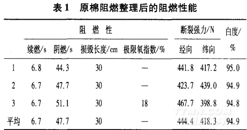 (2)PyrovatexCP后整理工藝。整理后產品的阻燃性能較好,耐久性能好,可耐家庭洗滌50次甚至達到200次以上。缺點是整理工藝損傷纖維的強力 。
