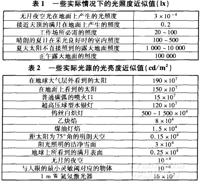具有感光性能的視細胞相當于照相膠片上具有感光性能的鹵化銀(Agcl、AgBr、A )微粒。視細胞包括錐體細胞(cone)和桿體細胞(rod)兩種視覺感光細胞,它們所含的感光物質不同,所以執行的視覺功能也不同。錐體細胞的感光靈敏度低,在亮度為3 cd/m 以上的光亮條件下起作用,能夠分辨顏色和物體的細節,稱為錐體視覺或明視覺(photopic vision);桿體細胞只能在亮度為0.001 cd/m 以下的黑暗條件下起作用,其感光靈敏度高,但僅能感知明暗,不能分辨顏色和物體的細節,稱為桿體視覺或暗視覺(scotopic vision)。如果亮度介于明視覺與暗視覺所對應的亮度水平之間,視網膜中的錐體細胞和桿體細胞將同時起作用,稱為中間視覺或介視覺(mesopic vision)。錐體細胞和桿體細胞分別是因其形狀為圓錐狀和棒狀而命名的。在錐體細胞中又含有分別對紅、綠、藍光有響應的三種細胞,其數量之比大約為32:16:1。因此,可以形象地說,人眼是由高靈敏度的黑白膠片和中等靈敏度的彩色膠片組成的。