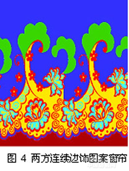 浮紋窗簾的花型構成可以采用四方連續。四方連續指圖案向四周延伸擴展,形成較大幅面的圖案。四方連續形式的浮紋窗簾圖案大致有以下三種[3]:條形圖案;幾何形連續圖案;散點圖案。