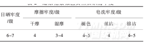由表2可知,染色織物的干摩擦牢度為4級,濕摩擦牢度為3~4級,皂洗牢度≥4級,日曬牢度達6~7級.