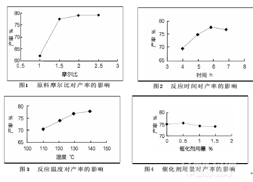 通過上述分析,可以推斷出最佳水平組合為A3B3C4D2。但是在正交試驗中沒有包含這個水平組合,因此要追加實驗。從追加實驗的結果來看,A3B3C4D2的水平組合得到的產品收率要優于以上做的正交試驗。因此可得到此合成反應的最佳合成工藝為: