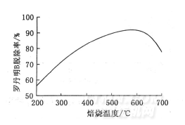 由圖4可以看出, TiO2/EP催化性能在200~600℃范圍內隨著焙燒的溫度升高而增強,對羅丹明B的脫除率逐漸增大;當溫度高于600℃以后,其催化性能隨著焙燒溫度的升高而減弱。這是因為TiO2主要由金紅石型、銳鈦礦型二種混晶組成,當焙燒溫度低于600℃時,微波制成的TiO2/EP催化材料主要以銳鈦型TiO2存在,當溫度高于600℃, TiO2/EP催化材料由銳鈦型轉化成金紅石型。金紅石型TiO2的折射率比銳鈦型高,遮蓋力和著色力也高,其比表面積小,光催化性能小;而銳鈦型TiO2在可見光短波部分的反射率比金紅石型高,對紫外線的吸收能力比金紅石型低,光氧化催化活性比金紅石型高。因此,焙燒溫度在550℃為好。