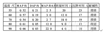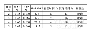 由表2可知,隨著酯化反應溫度升高,合成磷酸酯中單酯與雙酯的比值逐漸變大,且合成產品的潤濕時間、沉降時間均遞減。這表明酯化溫度的提高有利于合成磷酸酯產品的耐堿滲透性能。