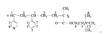 產物于50℃干燥至恒重,得淺黃色粉末.陽離子共聚物結構式如下: