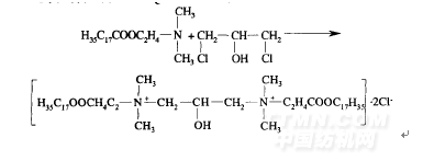 由表1可看出,各因素對產品收率的影響程度次為:n(1,3一二氯一2一丙醇):n(二甲基硬脂酸乙酯基胺)>反應溫度>反應時間>乙醇用量.較佳的工藝條為:(1,3一二氯一2一丙醇):凡(二甲基硬脂酸乙酯基叔胺=1:2.1,80℃反應12h,(乙醇)=40%(對反應物質量).