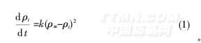 在吸附過程中,隨著吸附時間的延長,纖維上的吸附量是不同的.假定吸附過程遵循公式(1)描述的反應模型: