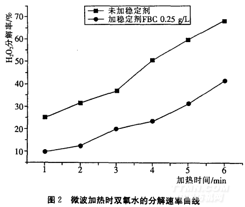 穩定劑對雙氧水分解速率的影響見圖1和圖2