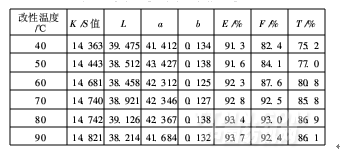 表2 改性溫度對染色性能的影響
