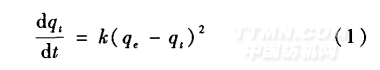 準二級動力學模型基于吸附速率由纖維表面未被占有的吸附空位數(shù)目的平方?jīng)Q定的假設 ,其公式為
