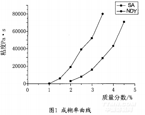 單個海藻酸鈉原糊及NDY原糊的成糊率曲線圖如下:
