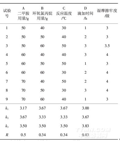 2.1無醛固色劑合成正交試驗結果與分析