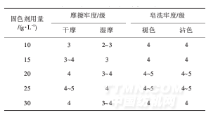 表2固色劑用量對織物色牢度的影響