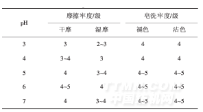 表3固色液pH對織物色牢度的影響