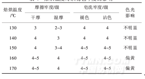 表4焙烘溫度對織物色牢度的影響