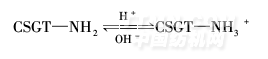 染液pH值對復合微球的吸附效果有明顯的影響,這是因為交聯殼聚糖/明膠(CSGT)微球在水溶液中存在下列平衡: