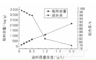 2.2.4染料質(zhì)量濃度對(duì)吸附性能的影響