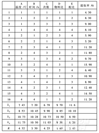 水平的正交試驗L16(45),按表1進行試驗,結果見