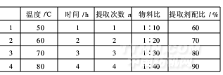取溫度為70℃,提取時間為2h,提取次數為4次,提取物料比為1∶30,提取劑中乙醇為60%。此工藝提取率較高,可達15%。