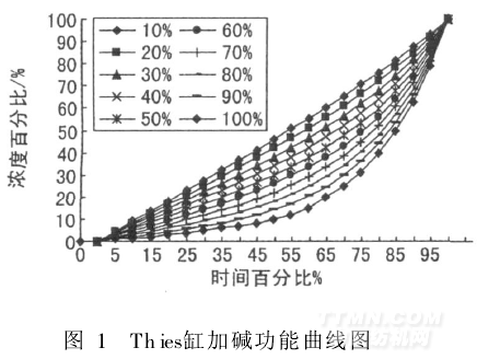 純堿加入應(yīng)選擇染機(jī)上加堿功率進(jìn)行操作。加堿功率一般按照百分比進(jìn)行設(shè)定,百分比越高,則起始加堿越慢。隨著時間的延長,加堿量逐步增加,由加堿引起的色花幾率降低,具體數(shù)值見圖1。一般生產(chǎn)中采用的工藝為:淺色90%,中深色70%,深色50%。