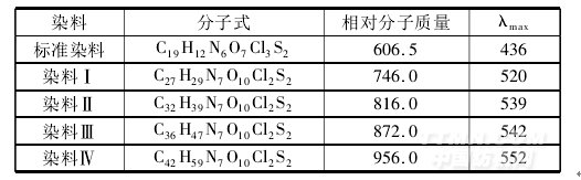 表2 染料的分子式、相對分子質量和最大吸收波長