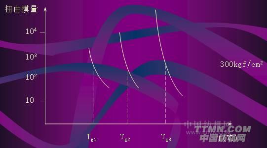 試驗表明,不同粘合劑的扭曲模量與溫度的關(guān)系是一組近似平行的曲線,而且扭曲模量為300kgf/cm2時對應(yīng)的溫度和粘合劑的玻璃化溫度非常接近。因此,難以測量的玻璃化溫度,可通過測扭曲模量為300kgf/cm2時對應(yīng)的溫度來獲得。通常: