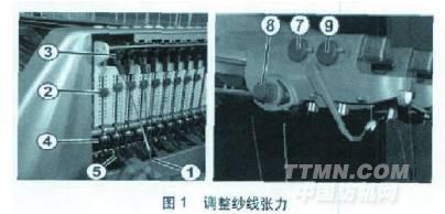 在調整紗線制動裝置(圖1中的⑧)時,注意被調整成紗線控制不能移動太多,或者不能松開制動脈沖。
