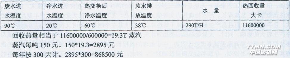 我公司前處理設備在生產過程中需消耗大量熱能,同時排出大量高溫廢水,溫度達到90。C左右,選用高密藍天的YWRH一200II型換熱器,該換熱器為階
