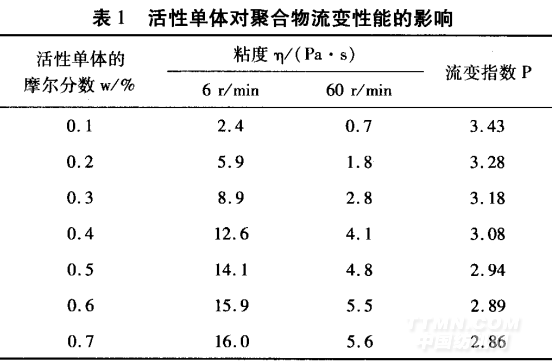 2.3活性單體對(duì)聚合物流變性能的影響