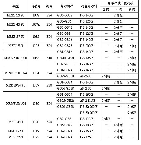 花型完全組織循環(huán)內(nèi)的所有花梳導紗針橫向位置都依據(jù)墊紗運動圖上第一個編織橫列來定位。一般將其直接畫在墊紗運動圖的下面,標出各把梳櫛中經(jīng)紗的位置。在穿經(jīng)圖的右側(cè)應(yīng)標出各梳櫛相應(yīng)的所采用的紗線種類和規(guī)格。在機械控制的多梳機中,一般使用起始橫列法。必須注意,在對梳櫛穿紗上機后,應(yīng)使第一塊鏈塊與推桿的從動滾子相接觸時,各梳櫛中的紗線位置像穿經(jīng)圖所示的位置排列。目前這種方法在我國經(jīng)編企業(yè)用的較多。它的優(yōu)點是花型設(shè)計受到的限制少,缺點是需保證當起始鏈塊與推桿滾子相接觸時,才能按照穿紗圖上所示位置對各梳進行定位。并且一般不同,穿紗需要重新進行,花型變換上機時間長。