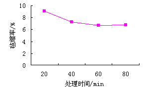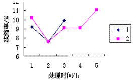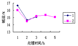 | 圖11 蛋白酶處理時間對氈縮的影響 |