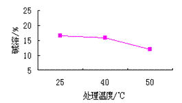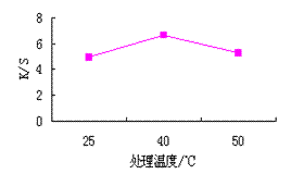 | 圖5 殼聚糖處理溫度對K/S值的影響 | 圖5 殼聚糖處理溫度對堿溶的影響 |