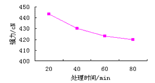 | 圖3 殼聚糖處理時間對強力的影響 | 圖4 殼聚糖處理時間對氈縮的影響 |