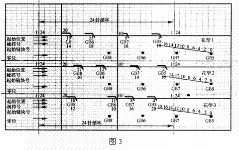 如果在機器上保持標準調整,推出部件和零位不變化,就可以生產系列花型。圖3顯示了生產系列花型的原理。