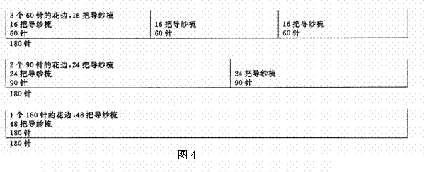 53/1/24機器上,編織180針的花紋循環。48把花梳可以生產不同寬度的花邊。