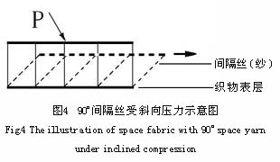 間隔絲(紗)的墊紗角度為間隔絲(紗)與織物表面所成的角度。間隔織物的靜態(tài)穩(wěn)定性在一定程度上由間隔絲(紗)的墊紗角度決定。間隔絲(紗)除了要能承受正向載荷外,還要能夠承受斜向載荷和橫向載荷,具有一定的抗剪切能力。