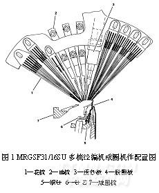 MRGSF31/16SU成圈機(jī)件的配置如圖1所示。壓紗板是一個(gè)技術(shù)術(shù)語(yǔ),是形成花紋效應(yīng)的一個(gè)裝置。它是一塊金屬板,處于壓紗梳與地梳之間,作上下運(yùn)動(dòng)。一般,在壓紗板前面的梳櫛我們稱為壓紗梳。壓紗梳形成的花紋具有凹凸層次,具有立體效應(yīng)。