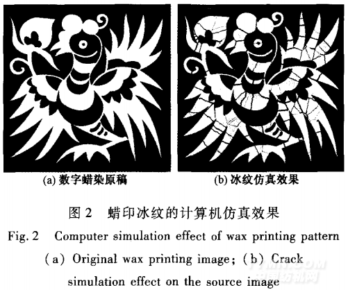 現(xiàn)有的計(jì)算機(jī)繪圖軟件功能非常強(qiáng)大,可繪制出各種渲染、云紋等紡織品圖案的特殊效果,蠟印圖案也可運(yùn)用Illustrator、Photoshop等圖形處理軟件來繪制,但蠟印織物中變化無窮的冰紋圖案是直接繪制的難點(diǎn),只能通過復(fù)制掃描稿中真實(shí)蠟印冰紋或使用數(shù)位板輸入方式手動描繪冰紋。這種繪制冰紋的方法工作量大,且不同的蠟印作品需要重復(fù)描繪,耗時耗工。采用計(jì)算機(jī)仿真模擬蠟印圖案是較為快捷的方法,可簡單有效地生成大量與真蠟印圖案相似的數(shù)字化圖形。