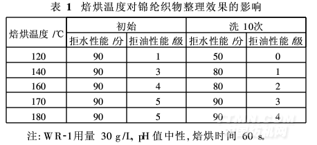 焙烘溫度對WR-1在織物上的成膜性有較大影響,進而影響織物的拒水拒油效果。改變焙烘溫度,按