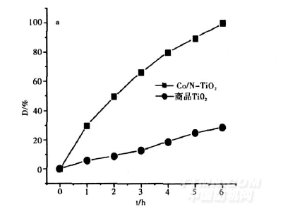 圖3是商品TiO2和Co/N-TiO2的紫外-可見漫反射光譜圖。