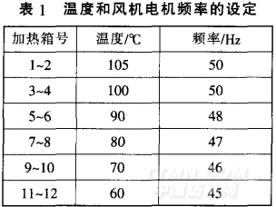 為了盡可能改善絲光色紗手感和柔軟性.采用較低溫度和慢烘干 工藝.設定溫度自進口端遞減 由 于濕紗在烘箱中經歷從濕態至干 態的變化.故從保證紗線不吹亂 和節能兩方面考慮.當所用烘箱 配置風機電機變頻器時.應按前 后箱號從高至低設定不同轉速 具體溫度設定和風機電機的頻率 如表1所示