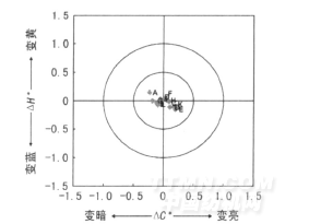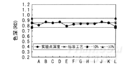 由圖5染品的深度變化中可以看出,以標準工藝染色織物的ΔC*和ΔH*為基準線,其色深值也均在標