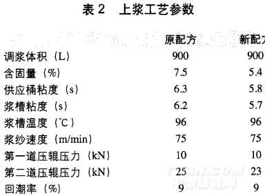 (3)漿紗質(zhì)量指標(biāo)(表3)