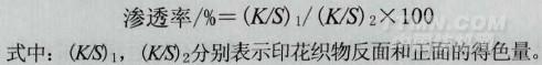 用SF600X Datacolor計算機測色配色儀測定印花后織物正反面K/S,然后用下列公式計算: