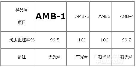 注:AMB-1采用JYK VISAMB-100防螨抗菌劑,其余纖維均采用JYK VISAMB-200防螨抗菌劑。