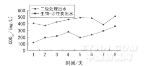 (3)生物-活性炭具有一定的抗沖擊負荷能力,但因容量有限,仍需防止二級處理出水大幅波動,以確保處理出水達到排放標準。